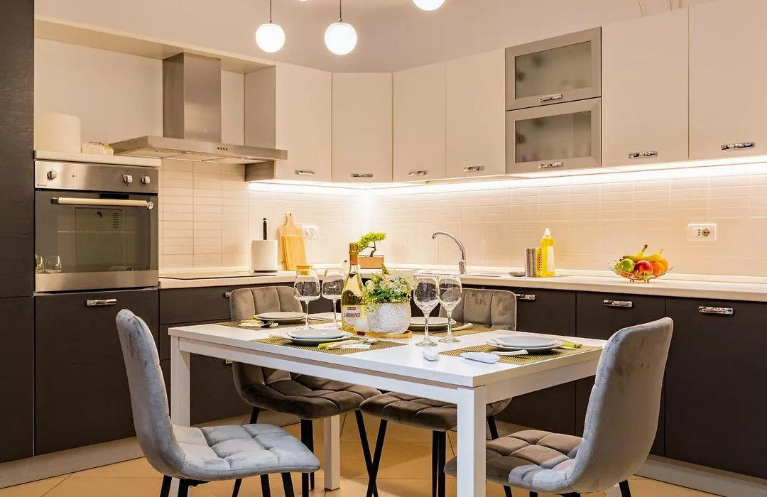 The 100 m² Fructus Plaza Ultracentral Apart Hotel Timisoara is situated approximately a 5-minute walk from El Dorado and 5 km from Timisoara Traian Vuia International airport. Staying in this spacious apartment, nestled not far from the Botanic Park, guests can relax on a terrace.
